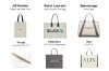 กระเป๋าผ้าแคนวาสที่มีการนำมาผสมผสานกับหนังสัตว์จากแบรนด์ "SAINT LAURENT" ประเทศฝรั่งเศส นอกจากนั้นยังเพิ่มรายละเอียดพิเศษด้วยการนำกระดุมแกะสลักมาตกแต่ง และมีสายถือที่ทำจากหนังสัตว์