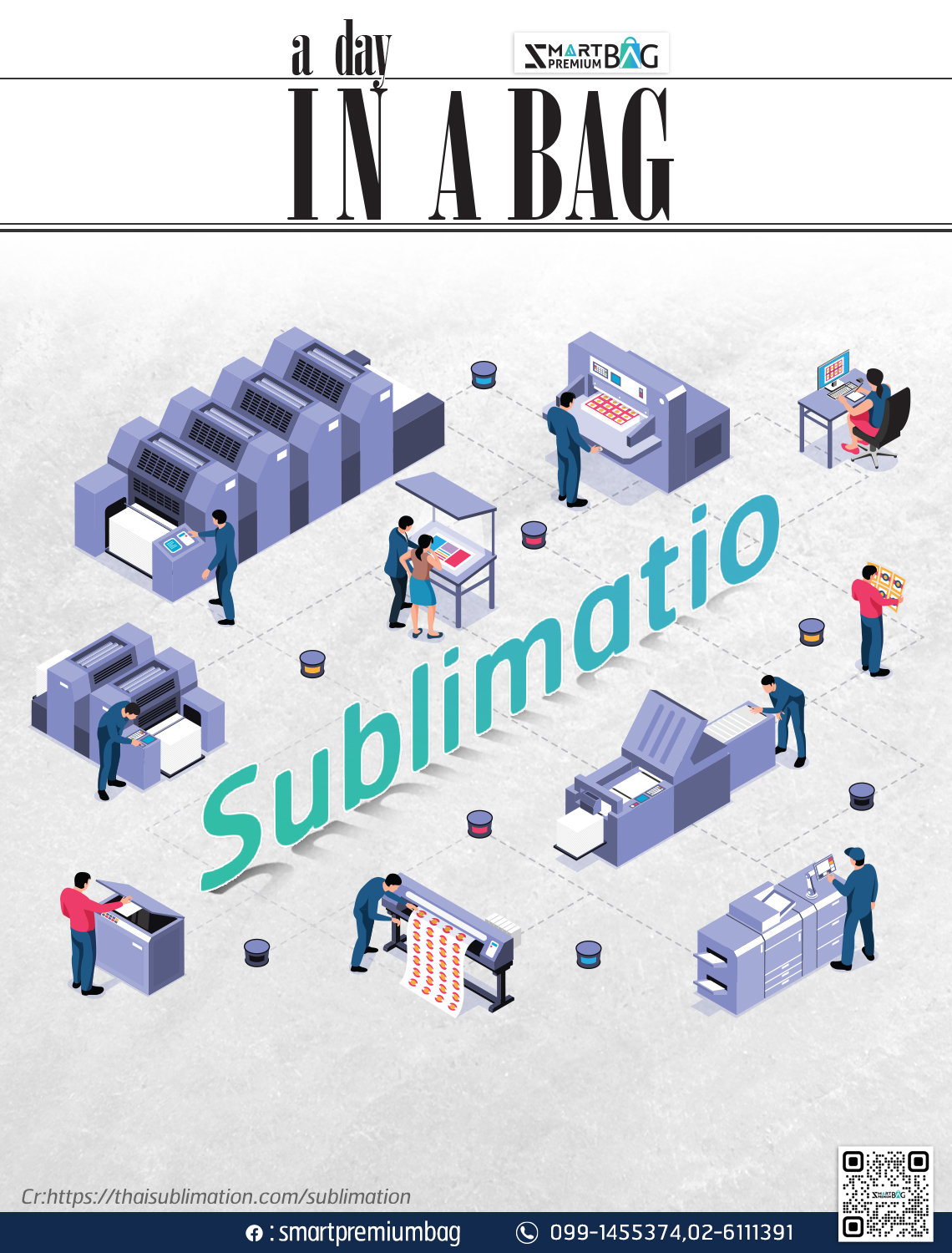 การพิมพ์ซับลิเมนชั่น Sublimation คือ การพิมพ์แบบลงไปยังกระดาษด้วยน้ำหมึกซับลิเมชั่น กระบวนการทำงานจะเริ่มโดยการสั่งพิมพ์รูปลงไปยังบนกระดาษซับลิเมชั่น จากนั้นนำกระดาษที่พิมพ์ไปวางทับลงบนผ้าแล้วรีดด้วยความร้อน 200 องศา โดยการกดทับเพื่อถ่ายเทตัวน้ำหมึกจากกระดาษลงบนเนื้อผ้าโดยกำลังการผลิตประมาณ 10,000 ตร.ม. ต่อ ชม. สามารถรองรับงานจำนวนเยอะได้